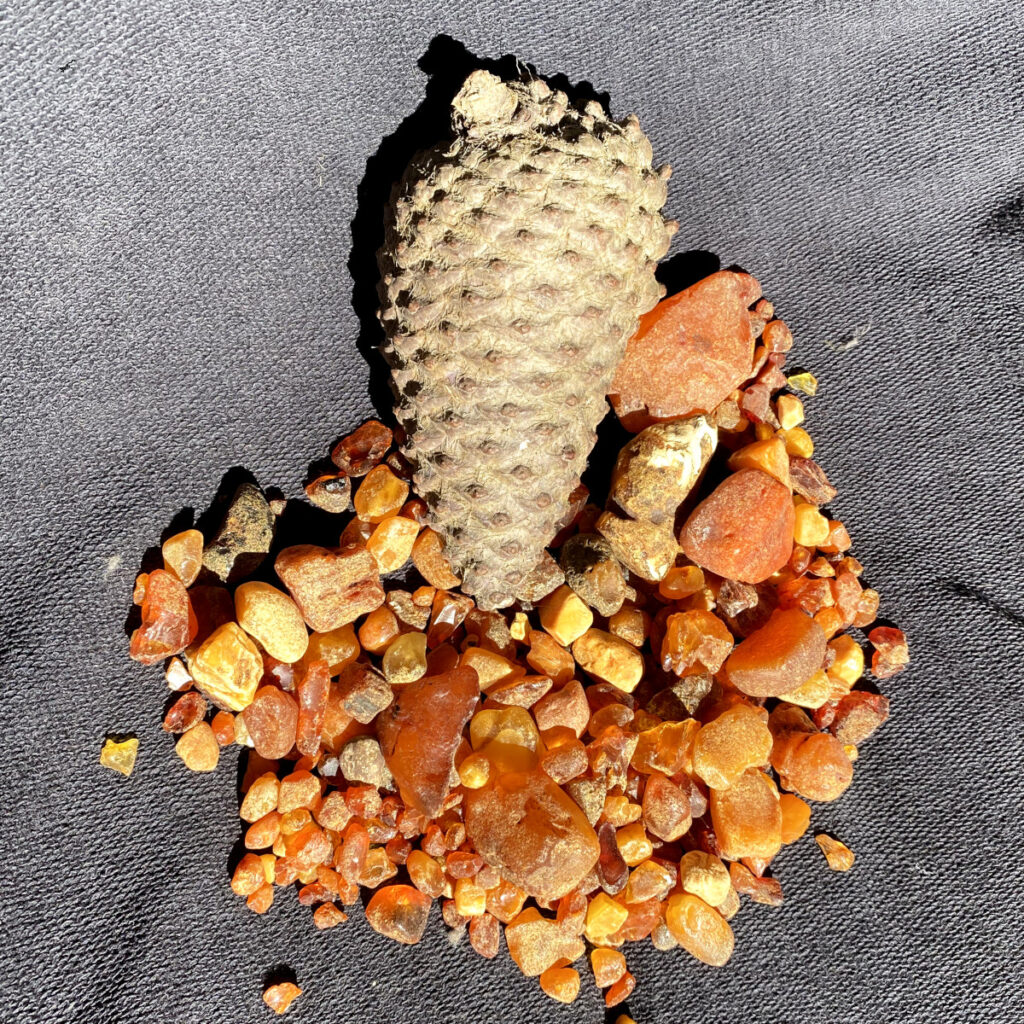 Men da den store katastrofe indtraf for 40+ millioner år siden, landede koglen, harpiks og andre planterester under tryk og varme, som forvandlede alting.